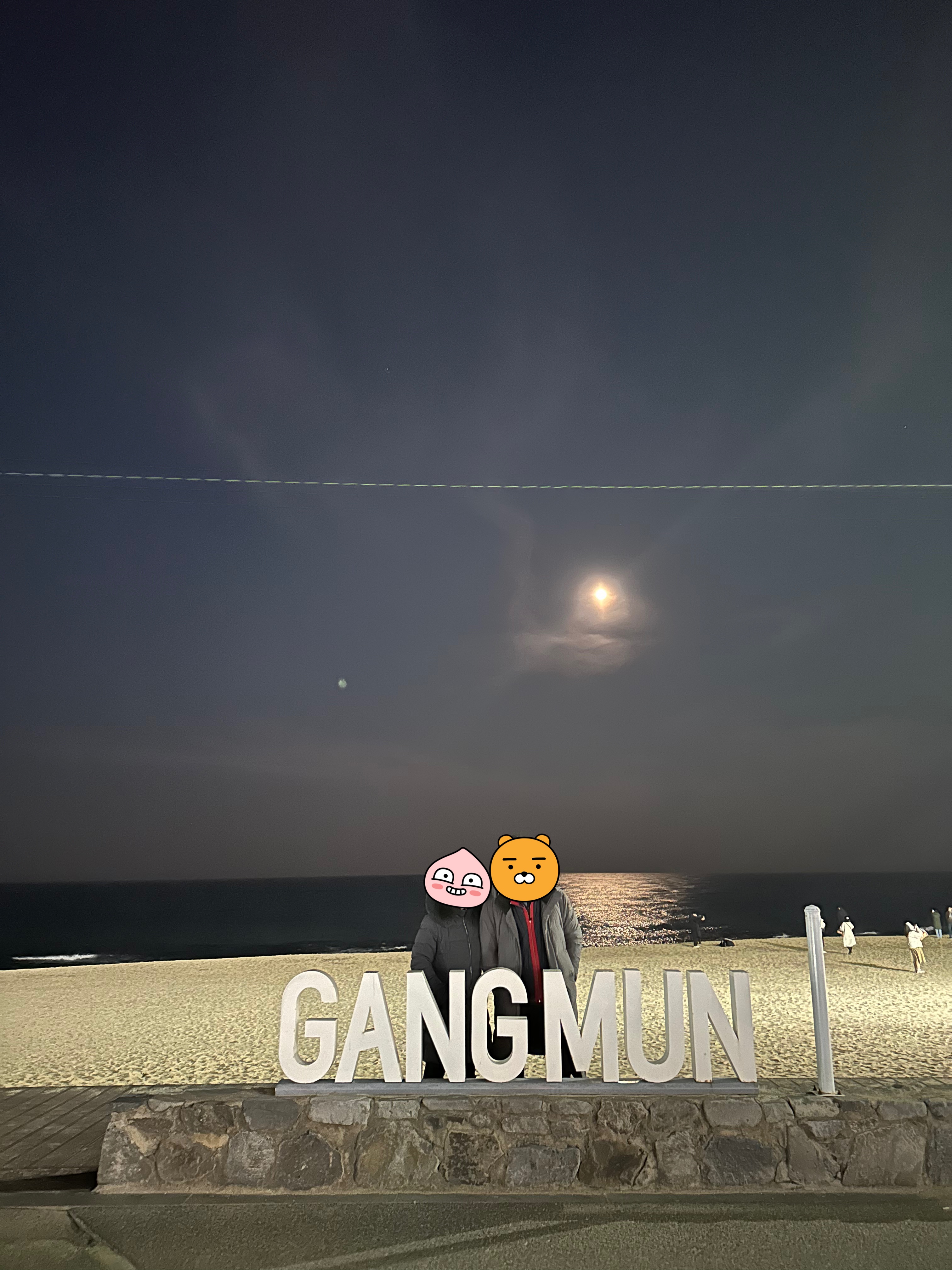 모래사장 위를 걷다가 잠시 멈춰 바다를 바라보았다. 강릉의 겨울 바다는 차갑지만 고요했다. 경상도 바다와는 또 다른 느낌이었다. 이 산책이 첫째 날의 마무리로 딱 적당했다고 생각한다.