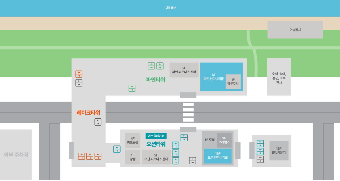 - 구성: 오션타워, 레이크타워, 파인타워 총 3개 동으로 구성 (1,000실 이상의 대규모 호텔)